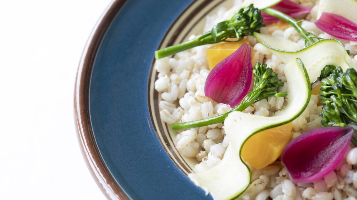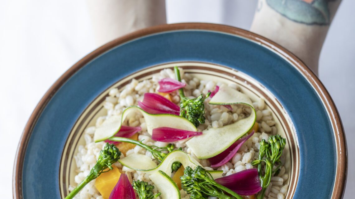 Sommerlig byggrynssalat, god alene eller som tilbehør til grillmat!